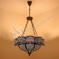 Suspended with decorative chains and crafted from solid brass, this chandelier blends timeless craftsmanship with modern appeal. It’s a perfect centerpiece for majlis rooms, dining areas, hotel lobbies, villas, or traditional-inspired spaces.