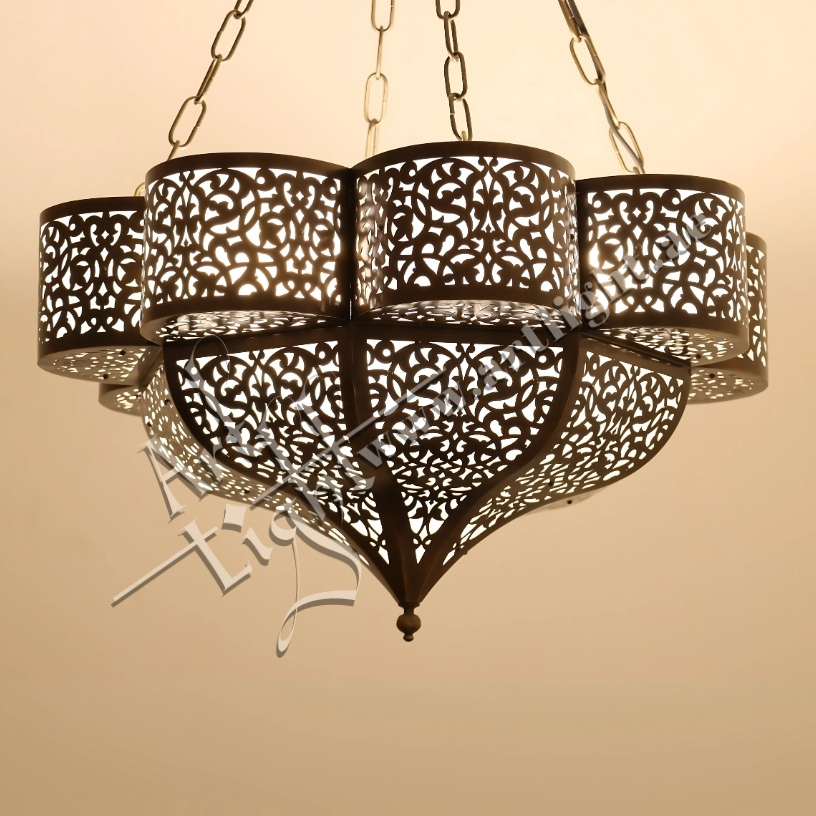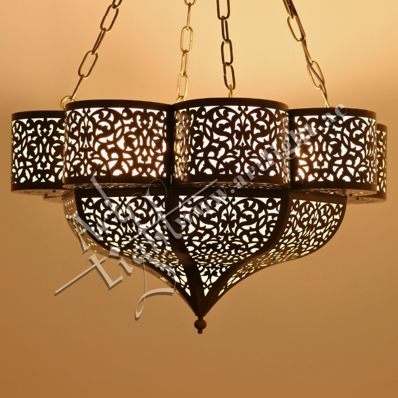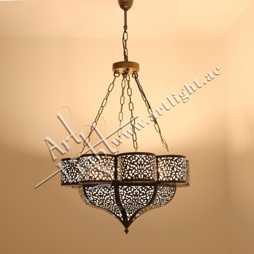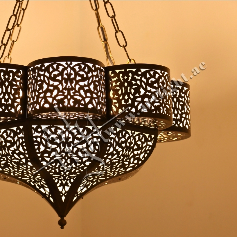 - Design: Round multilayer chandelier with Moroccan floral patterns