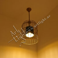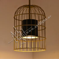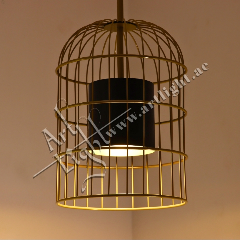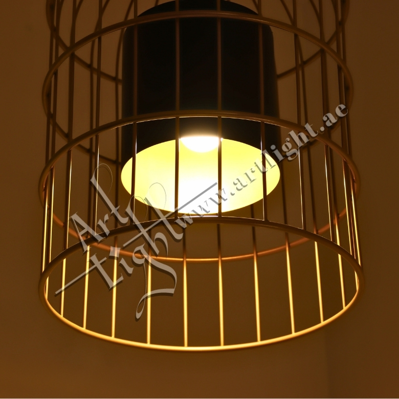 Modern Cage Pendant Light – Gold Finish with Central Cylinder Diffuser