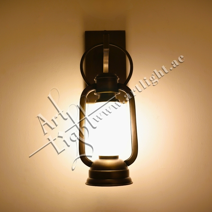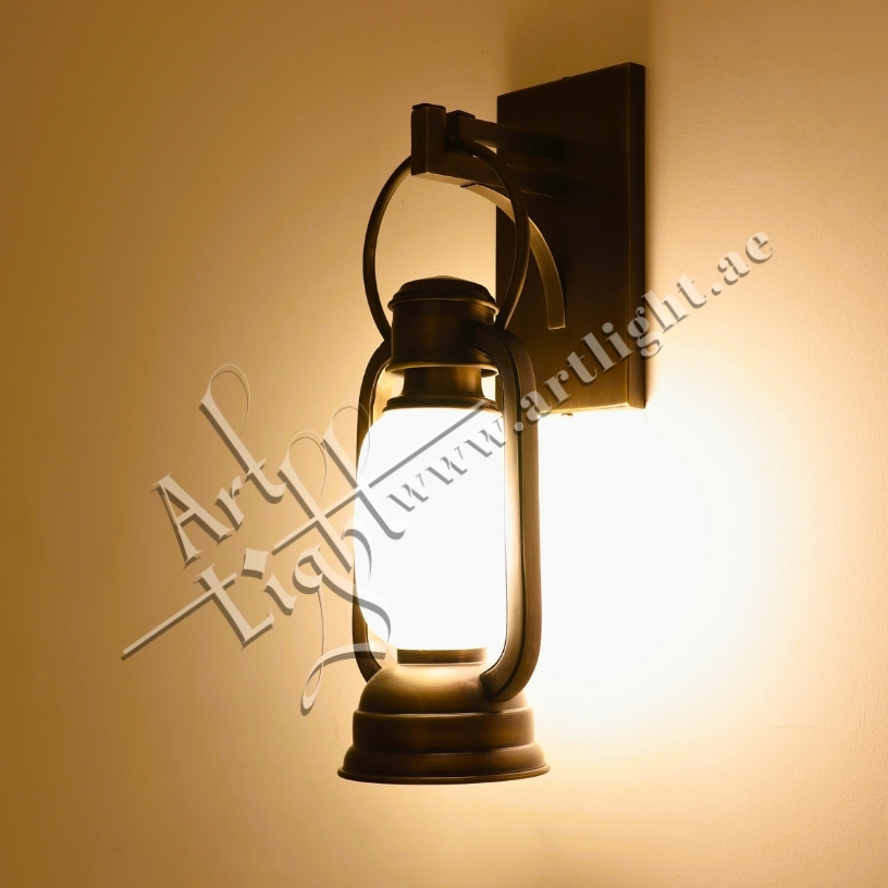 Inspired by the charm of traditional oil lanterns, this vintage-style wall sconce combines solid brass craftsmanship with a frosted glass diffuser to create warm, ambient lighting. The fixture is mounted on a classic brass bracket and designed to evoke heritage and hospitality.